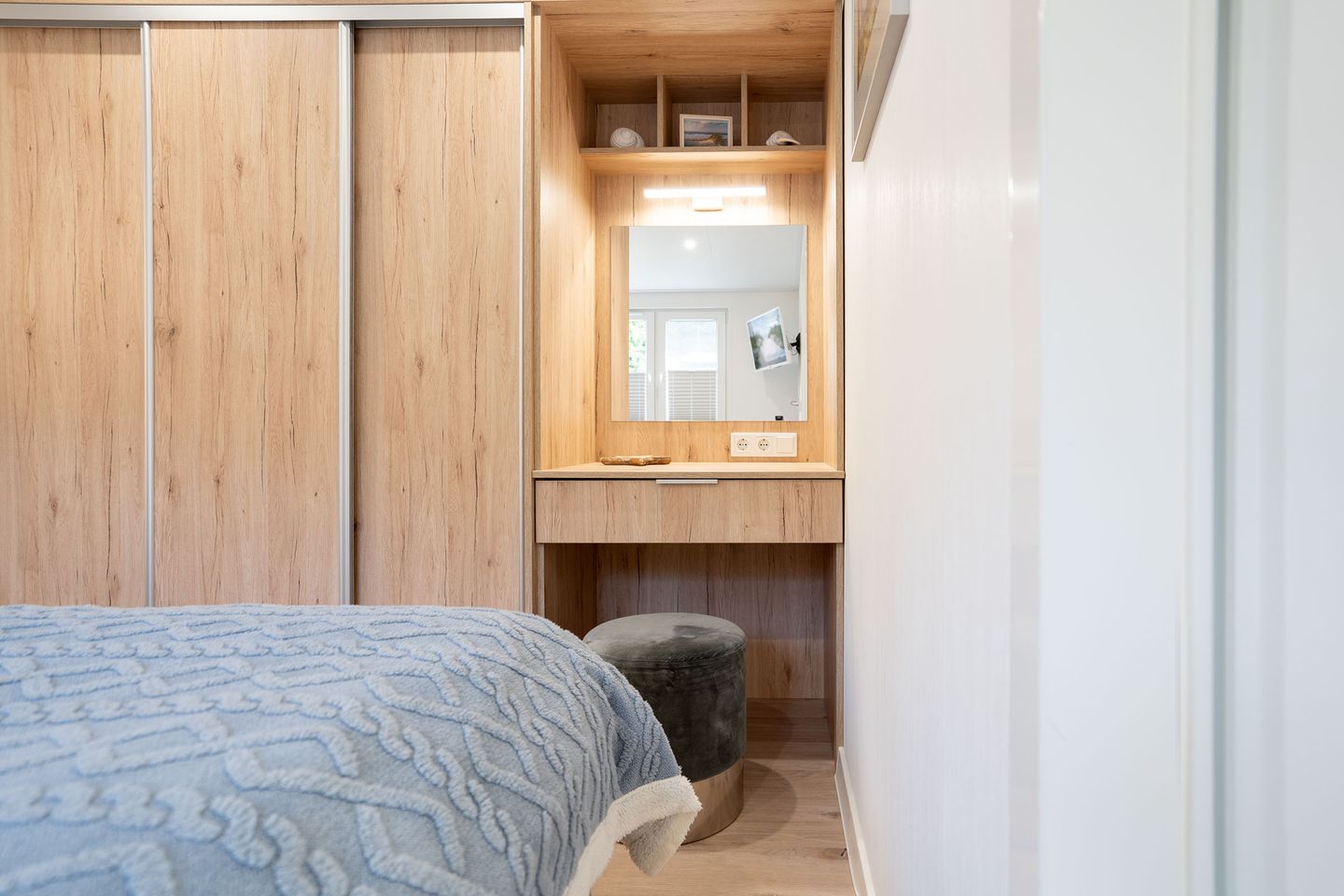 Zu Fuß zum Strand und Einkaufen ca. 20 Minuten,gut zu laufen. Der Wald nebenan ist sehr schön. Wir kommen gerne wieder.