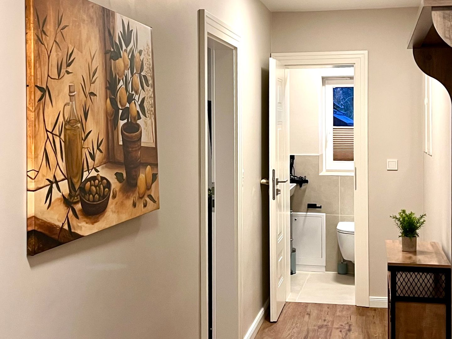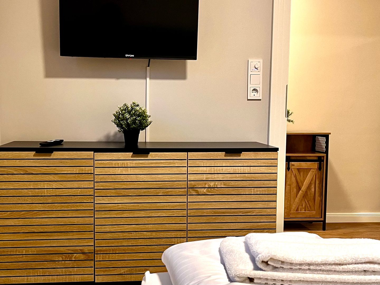 Das Badezimmer ist mit einer Dusche, die über eine Wanne verfügt, ausgestattet. Für zusätzlichen Komfort sorgt ein Haartrockner. Bettwäsche und Handtücher werden gestellt, sodass Sie sich um nichts Weiteres kümmern müssen. Die zentrale Heizung garantiert angenehme Temperaturen zu jeder Jahreszeit. Der Wohnbereich ist geschmackvoll eingerichtet und bietet neben einem Sofa auch TV sowie Ablagemöglichkeiten wie eine Garderobe und Kommode.