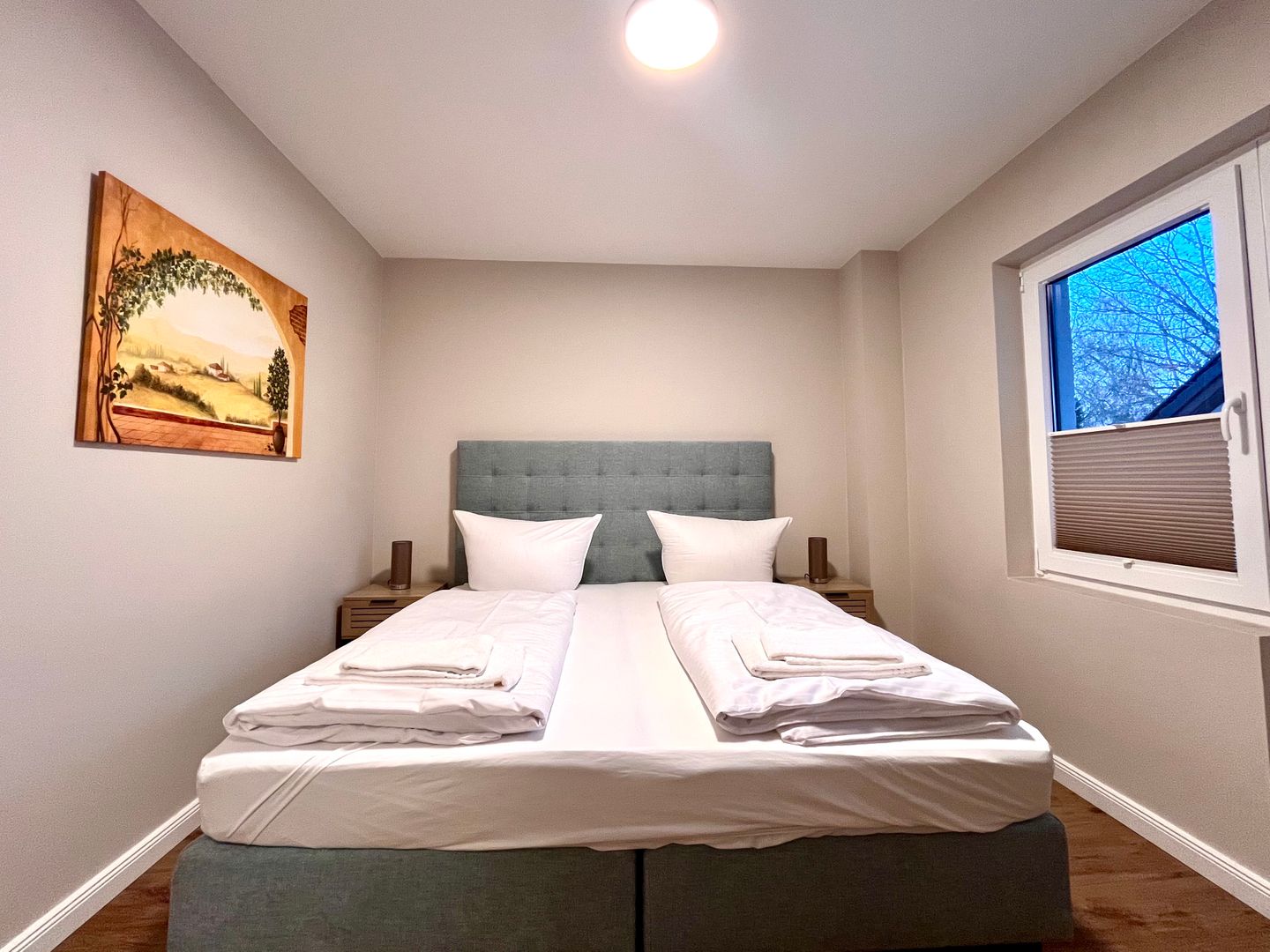 Mit einem Schlafzimmer und vier Schlafmöglichkeiten ist die Unterkunft ideal für Familien, Paare oder auch kleine Reisegruppen geeignet. Die Wohnung besticht durch eine moderne, vollständig ausgestattete, geschlossene Küche. Hier stehen Ihnen neben einem Herd, Backofen und Kühlschrank mit Gefrierfach auch Küchenutensilien, Kaffeemaschine, Wasserkocher, Toaster sowie Geschirrhandtücher, Besteck und Geschirr zur Verfügung. Ein gemütlicher Esstisch ermöglicht Ihnen gemeinsame Mahlzeiten in ansprechender Atmosphäre.