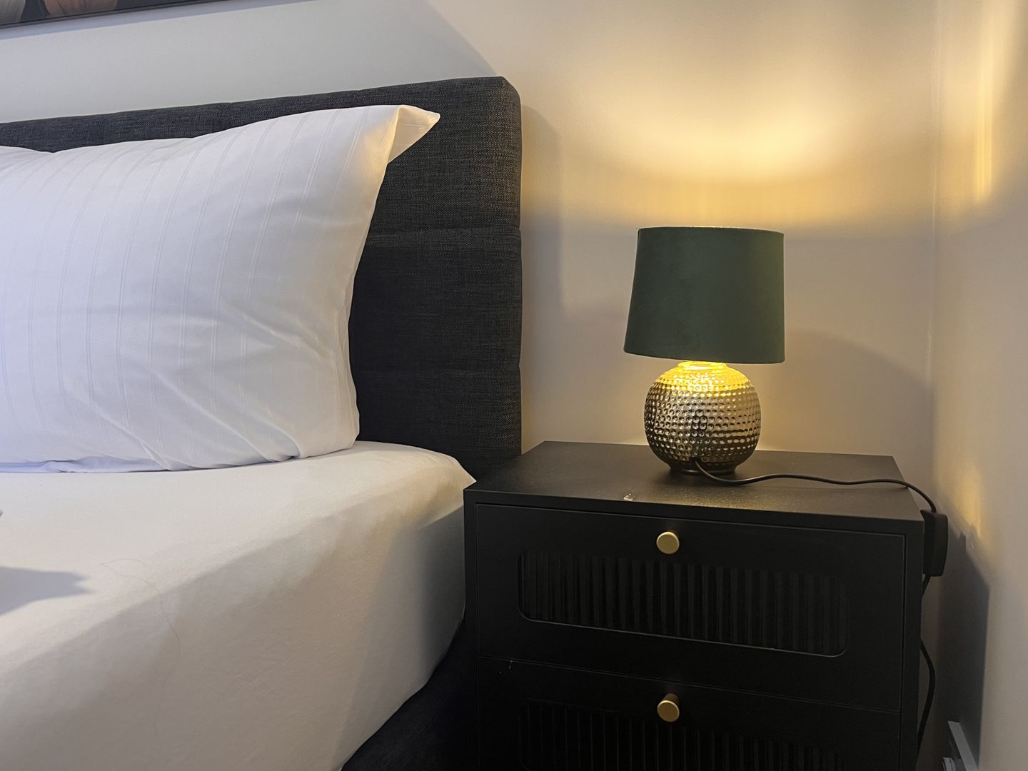 Für einen hohen Wohnkomfort sorgen zudem ein Badezimmer mit Badewanne (Dusche mit Wanne), Waschbecken, WC, Haartrockner und Spiegel sowie frische Bettwäsche und Handtücher. Weiterhin stehen Ihnen eine Kommode, ein Abfalleimer, Geschirrhandtücher und eine Garderobe zur Verfügung.