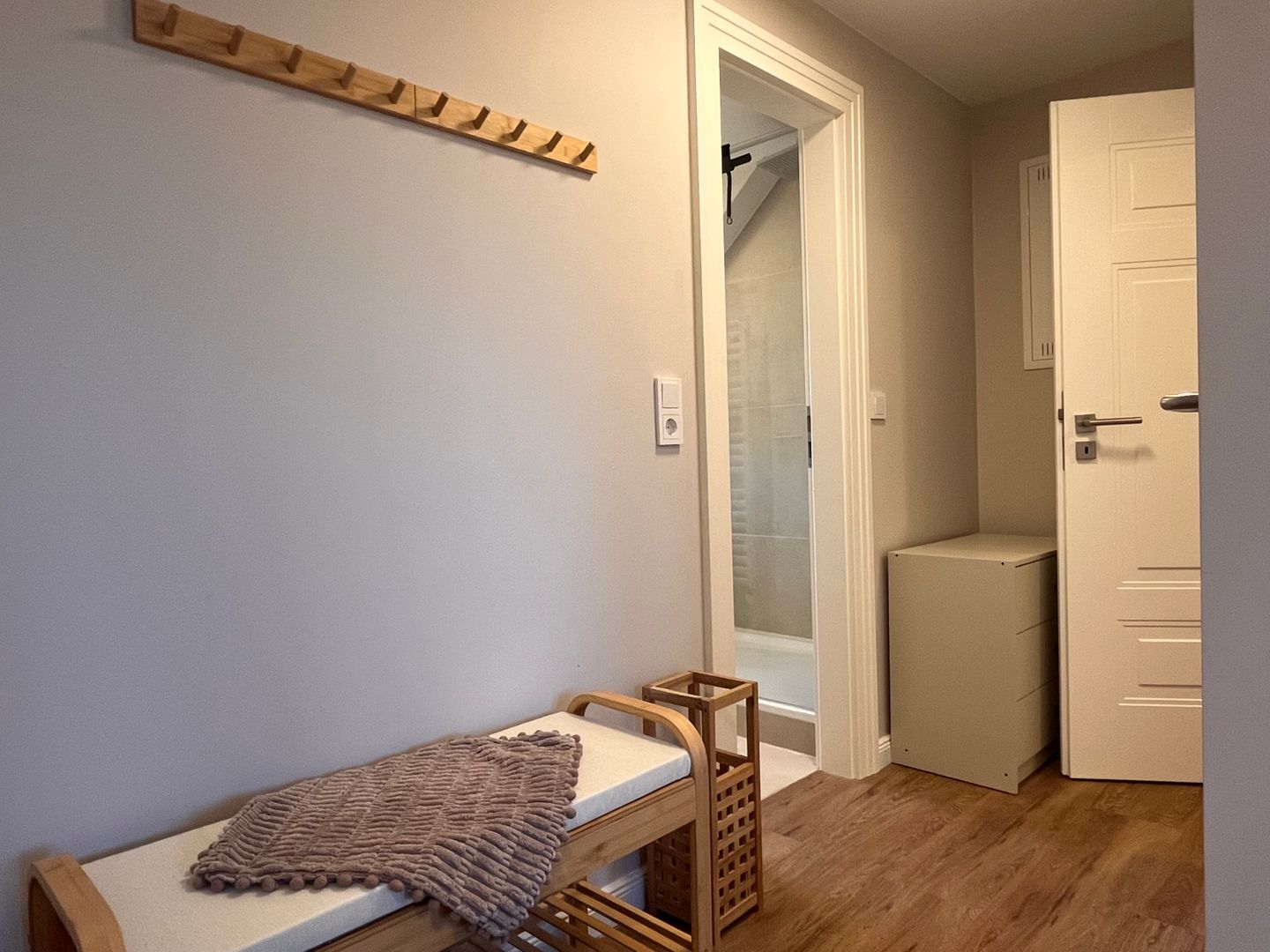 Ein privater Parkplatz ist für Ihren Aufenthalt reserviert, sodass Sie die Anreise und Ausflüge in die Umgebung bequem gestalten können. Die Zentralheizung sorgt auch in der kühleren Jahreszeit für angenehme Temperaturen. Abgerundet wird das Wohnangebot durch zahlreiche Komfortdetails wie eine Kommode, Garderobe, Spiegel, Haartrockner, Geschirrhandtücher, Abfalleimer und warmes Wasser in der gesamten Unterkunft. Im Wohnzimmer steht Ihnen ein TV zur Verfügung.