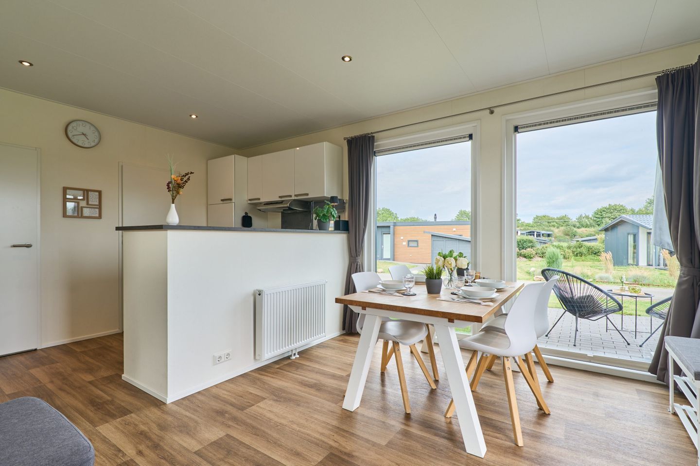 Im Haus erwartet Sie ein offener Wohnbereich mit moderner, voll ausgestatteter Küche, die unter anderem mit Geschirrspüler, Backofen, Herd, Kühlschrank, Gefrierfach, Wasserkocher, Kaffeemaschine, Toaster, sowie genügend Geschirr und Besteck ausgestattet ist. Sämtliche Küchenutensilien stehen ebenfalls bereit, sodass es Ihnen an nichts fehlt, um sich selbst zu verpflegen. Ein Esstisch lädt zu gemeinsamen Mahlzeiten ein. Im angrenzenden Wohnbereich sorgt ein bequemes Sofa für Entspannung und Unterhaltung. Ein Flachbild-TV steht für Ihre mediale Unterhaltung zur Verfügung.