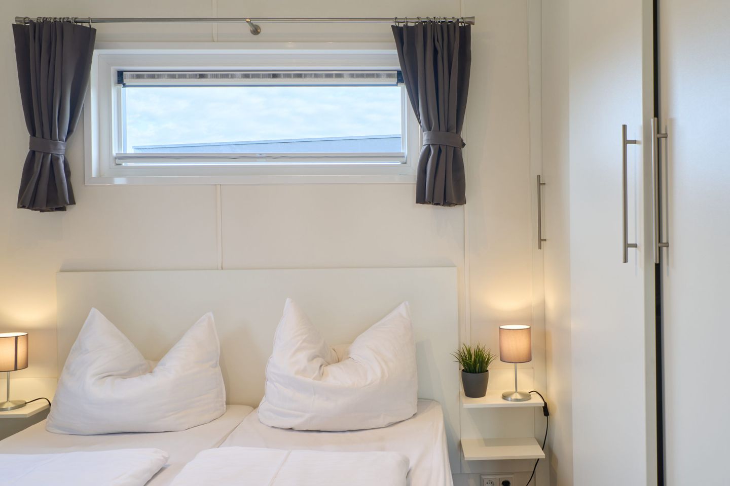 Das Ferienhaus umfasst insgesamt drei Zimmer. Die Schlafmöglichkeiten sind für bis zu vier Personen konzipiert. Frische Bettwäsche, Handtücher und Geschirrhandtücher werden bereitgestellt, ebenso wie ein Staubsauger. Das Badezimmer ist mit einer Dusche, Waschbecken, WC und Spiegel komfortabel ausgestattet. Zusätzliche Annehmlichkeiten wie Sichtschutz an allen Fenstern erhöhen Ihren Wohnkomfort weiter.