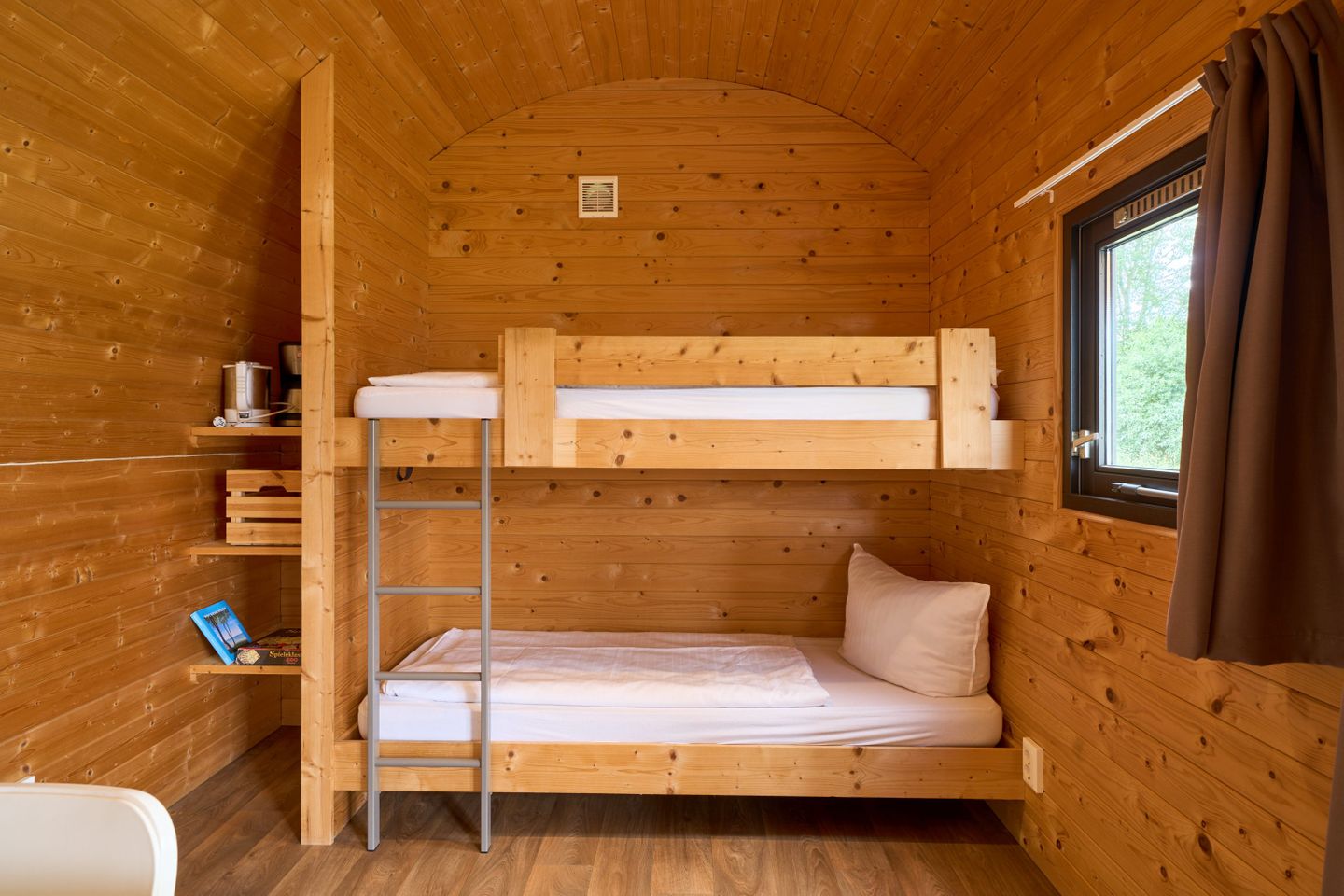 Kleine Wohnraum-Lodge mit Doppel- und Etagenbett, ideal für Familien oder Gruppen