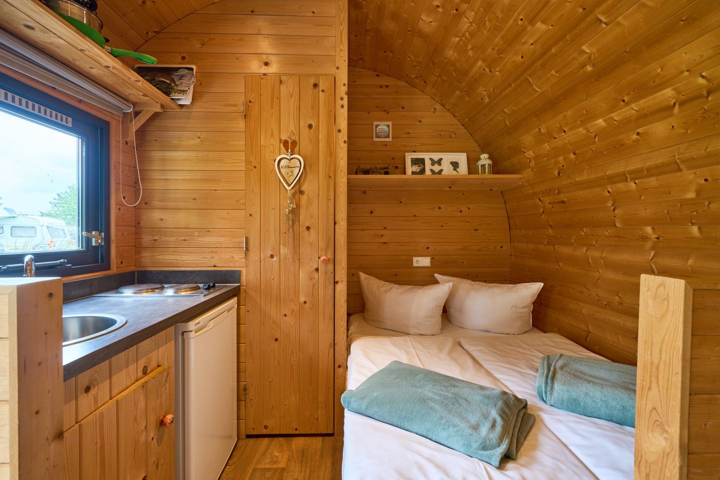 Küchenzeile inklusive 2 Kochplatten und Kühlschrank, perfekt für die Selbstversorgung